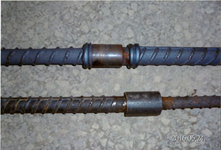 鋼筋續接器就是要把兩支獨立的鋼筋續接起來,不只續接拉力,也續接壓力,續接之後不但力量能完全傳遞,更重要的是不能永久「變位」。由於鋼筋續接器是機械的組合,因此試驗的重點就落在受力之後的永久「位移」。混凝土對承受拉力是很弱的,有了永久位移,產生裂縫,水氣就滲入混凝土內造成鋼筋鏽蝕膨脹,最後構件損壞,建築物就…。